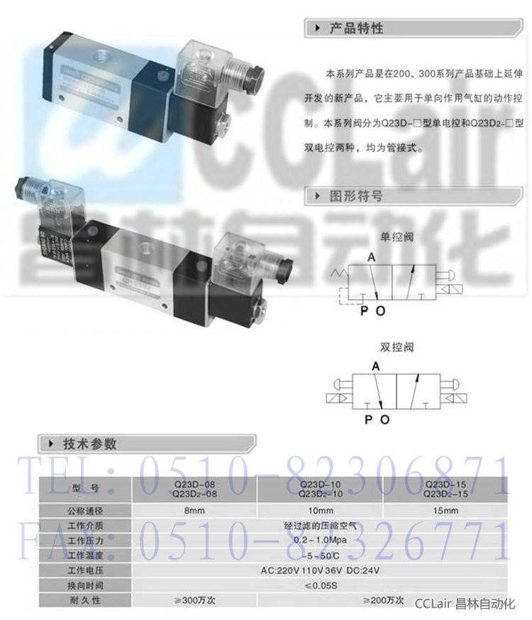 Q23D-08,Q23D-10,Q23D-15,Q23D2-08,Q23D2-10,Q23D2-15,二位三通電磁換向閥