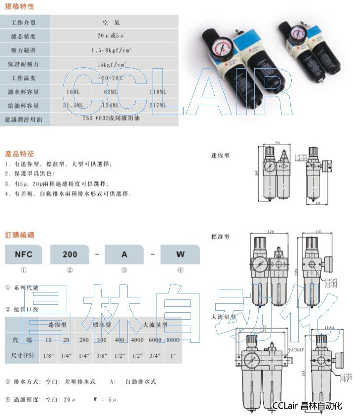 NFC10-A-W,NFC20-A-W,NFC200-A-W,NFC300-A-W,NFC400-A-W,NFC4000-A-W,空氣調(diào)理組合