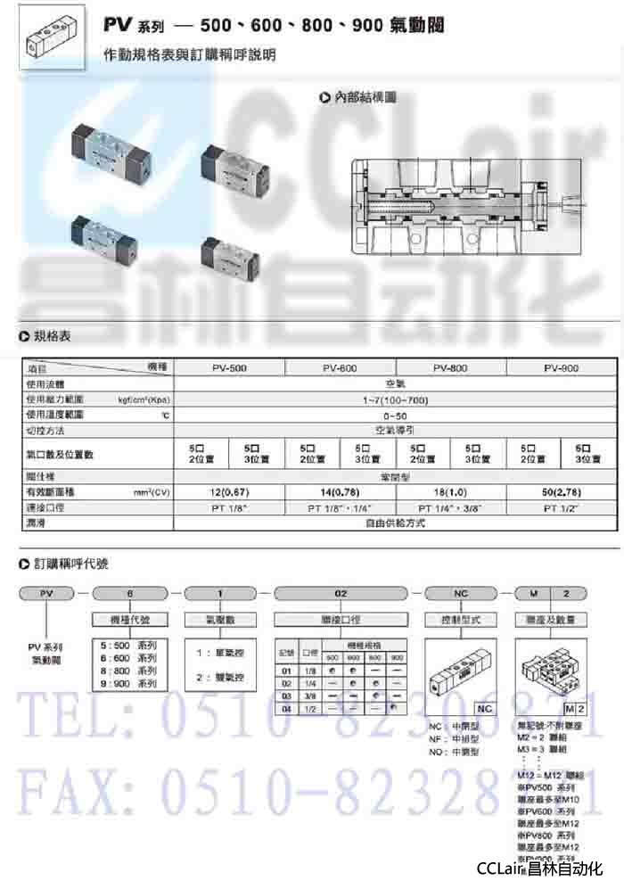 PV-5101,PV-6101,PV-6102,PV-8102,PV-8103,PV-9104,氣動閥