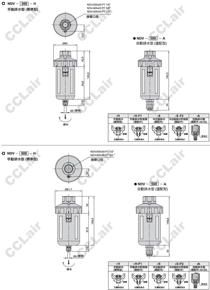 NDV-300-04-H,NDV-300-02-A,NDV-300-03-A,NDV-500-06-H,NDV-500-04-A,末端排水器