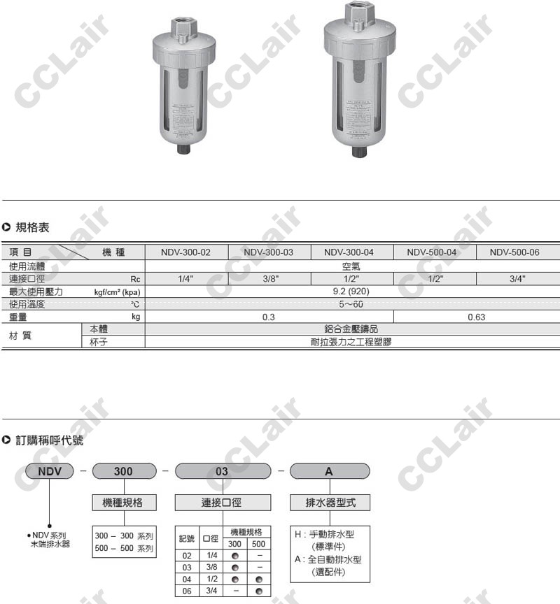 詳細信息 氣立可(chelic),NDV-300-02-H,NDV-300-03-H,NDV-300-04-A,NDV-500-04-H,NDV-500-06-A,