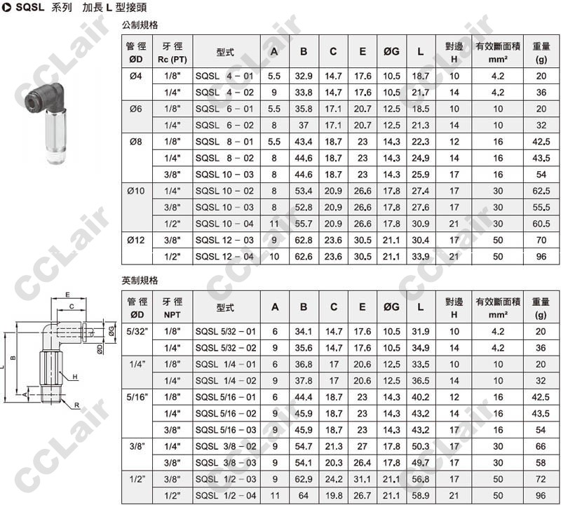 SQSL4-02,SQSL6-01,SQSL6-02,SQSL8-01,SQSL8-02,SQSL8-03,SQSL10-02,SQSL10-03,SQSL12-02,SQSL12-03,加長L型接頭