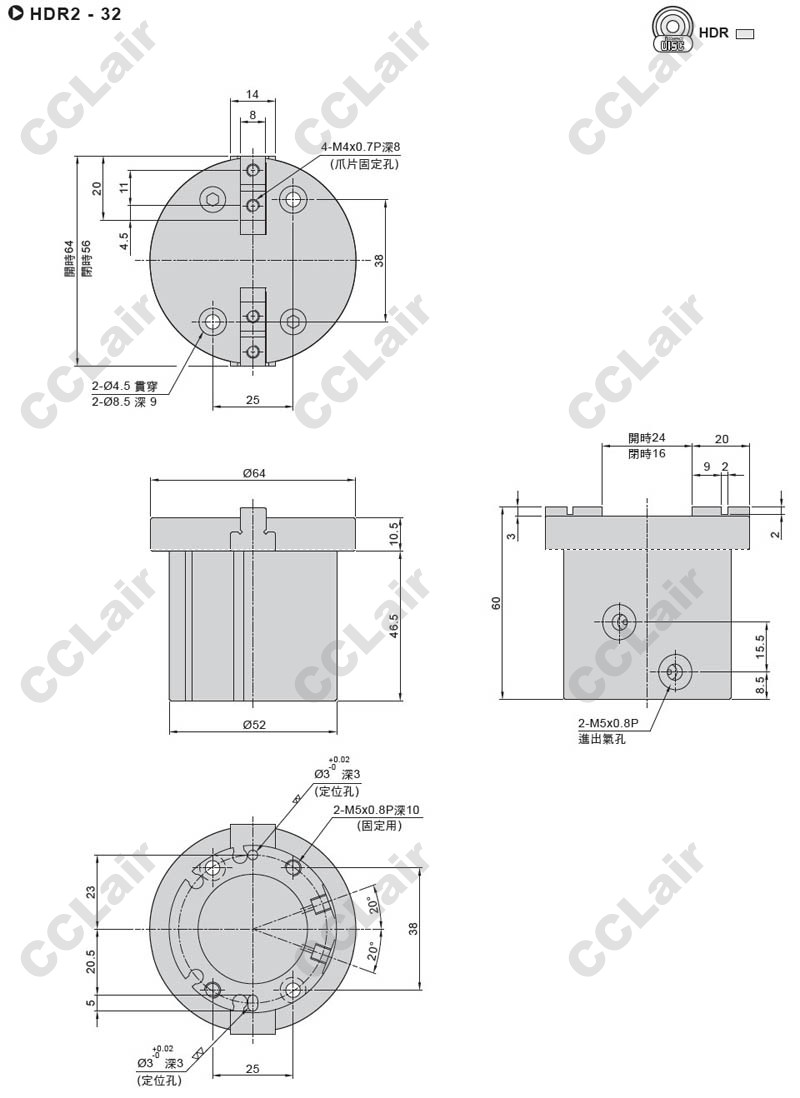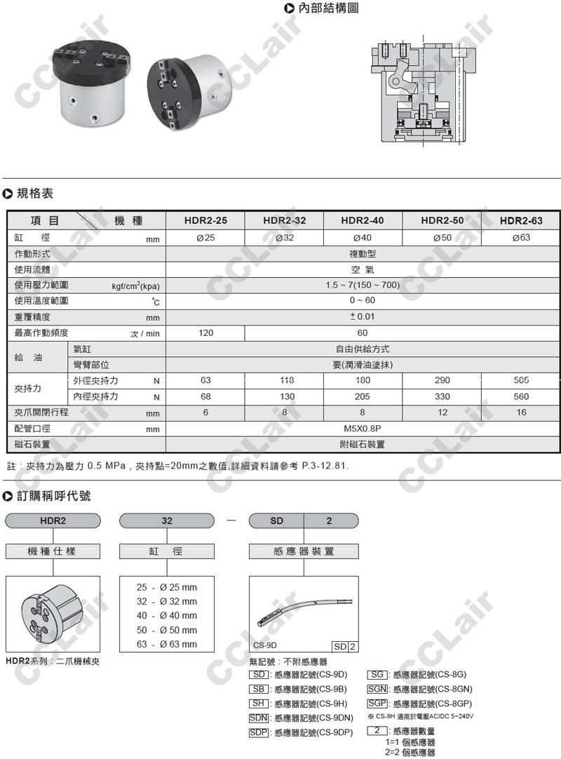 氣立可(chelic),HDR2-25-SD2,HDR2-32,HDR2-40,HDR2-50,HDR2-63,HDR225-SD2,HDR232-SD2,二爪機(jī)械夾