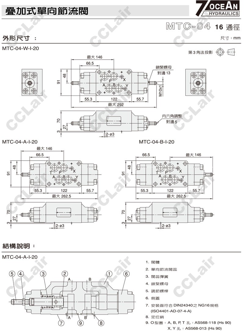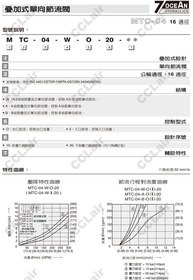 MTC-04-W,MTC-04-A,MTC-04-B,MTC-04-B-I-20,MTC-04-A-I-10,7OCEAN七洋疊加式單向節(jié)流閥