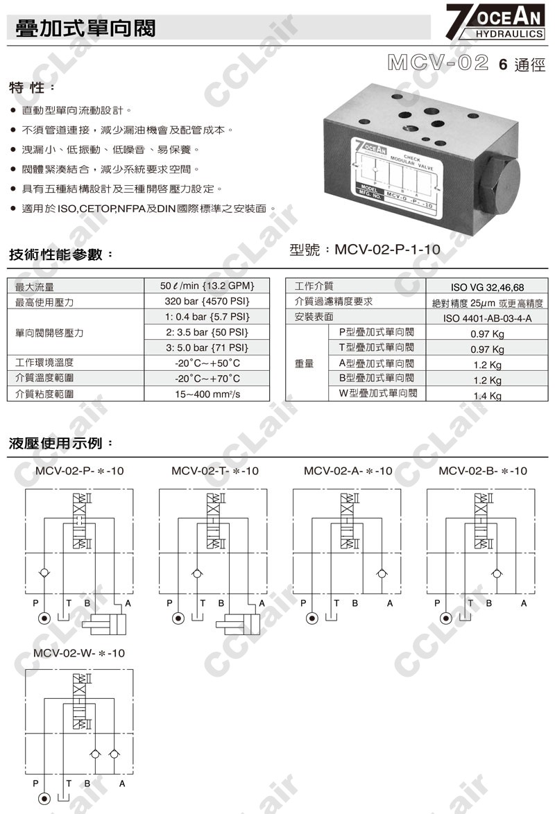 MCV-02-P,MCV-02-T,MCV-02-W,MCV-02-A,MCV-02-B,MCV-02-T-3-10,MCV-02-B-0-10,7OCEAN七洋疊加式單向閥