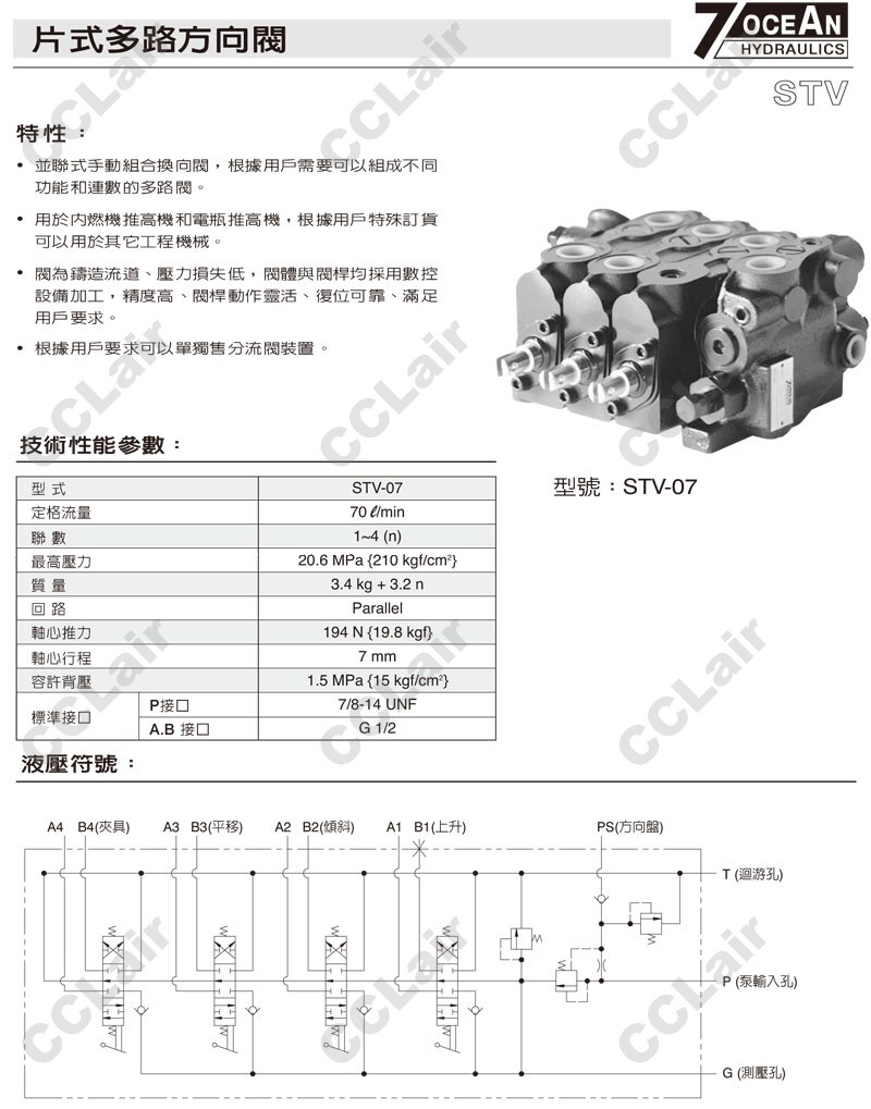 型號(hào): STV-07,7OCEAN七洋片式多路方向閥