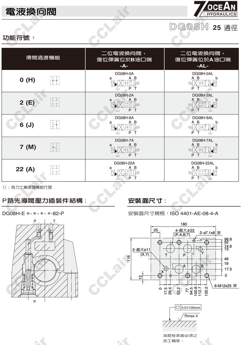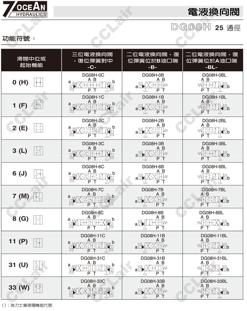 DG08H-0,DG08H-1,DG08H-2,DG08H-3,DG08H-5,DG08H-6,DG08H-7,DG08H-8,DG08H-11,DG08H-22,DG08H-31,DG08H-33,7OCEAN七洋電液換向閥