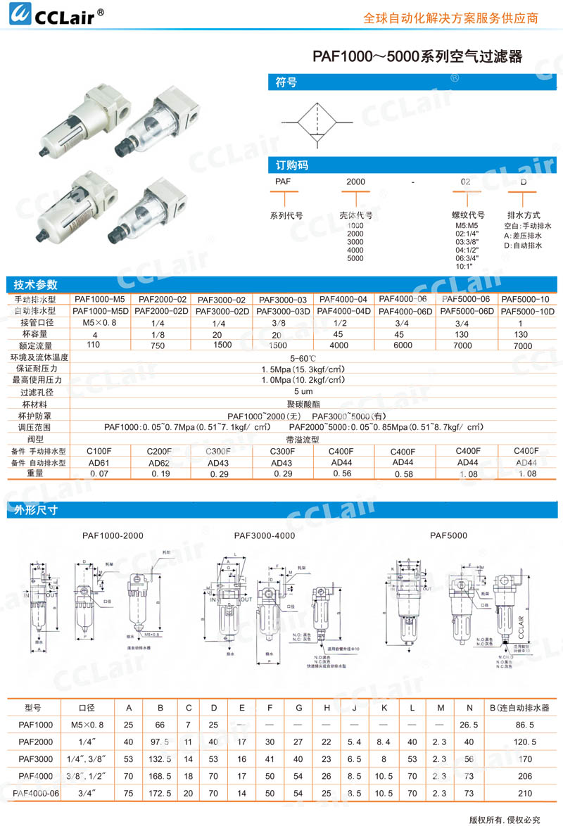 ![]() PAF1000-M5,PAF2000-02,PAF3000-03,CCLAIR PAF4000-04,PAF4000-06,PAF5000-06,PAF5000-10,