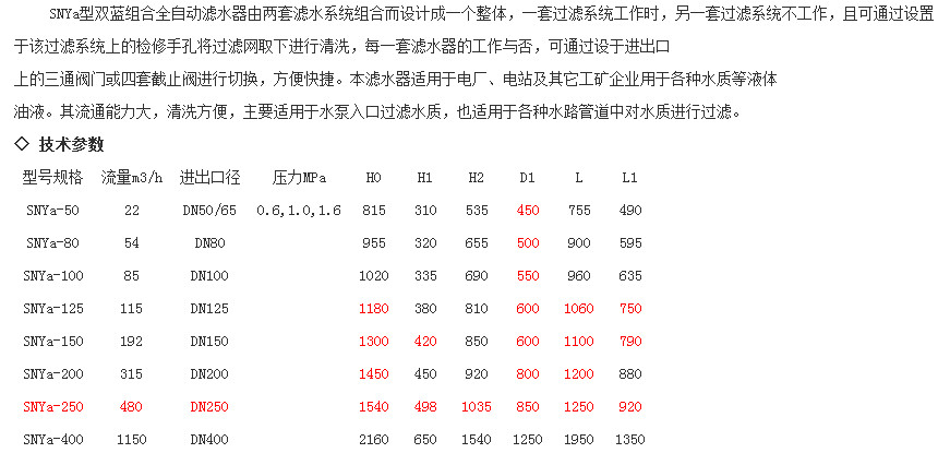 SNYa-50,SNYa-80,SNYa-100,SNYa-125,SNYa-150,SNYa-200,SNYa-250,SNYa-400,雙藍組合全自動濾水器