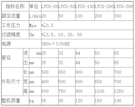 二、JYCG系列多級精密過濾機技術參數(shù)表