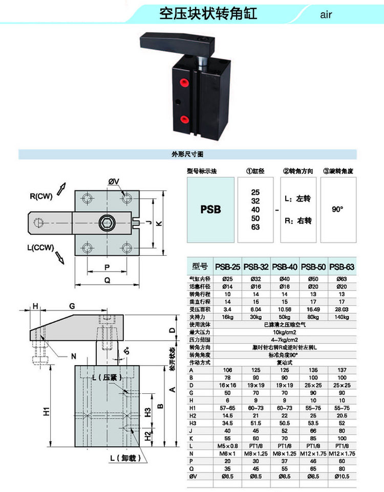 PSB25-L90,PSB32-L90,PSB40-L90,PSB50-L90,PSB63-L90,PSB25-R90,PSB32-R90,PSB40-R90,空壓感應(yīng)式轉(zhuǎn)角缸
