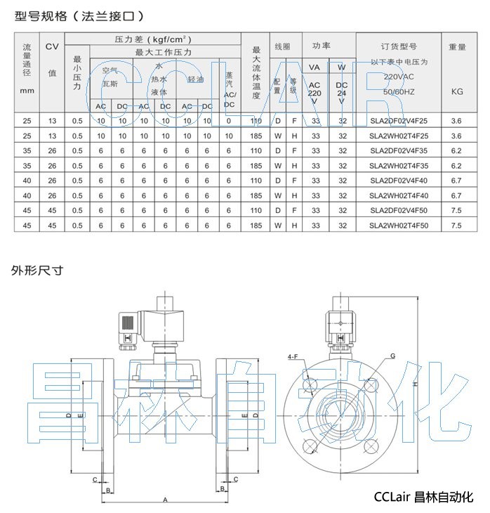 SLA2DF02V4F25,SLA2WH02V4F25,不銹鋼法蘭二位二通電磁閥(常開型)