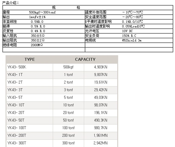 詳細(xì)信息 YK43-500K,YK43-1T,YK43-2T,YK43-3T,YK43-5T,YK43-10T,YK43-20T,setech稱重傳感器