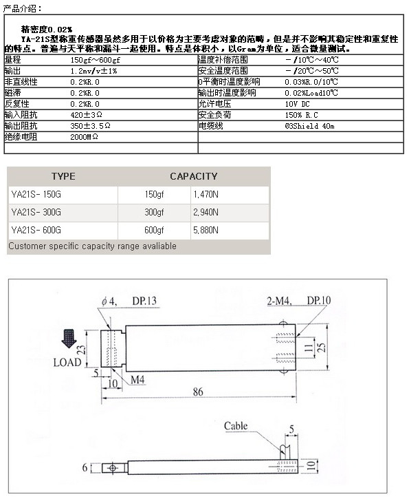 詳細信息 YA21S-150G,YA21S-300G,YA21S-600G,setech稱重傳感器
