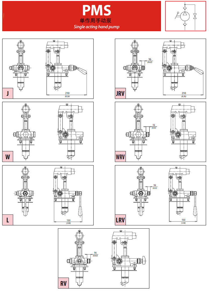 PMS6-P,PMS6-WRV,PMS12-W,PMS25-J,PMS45-L,PMS12-RV,PMS25-JRV,單作用手動泵
