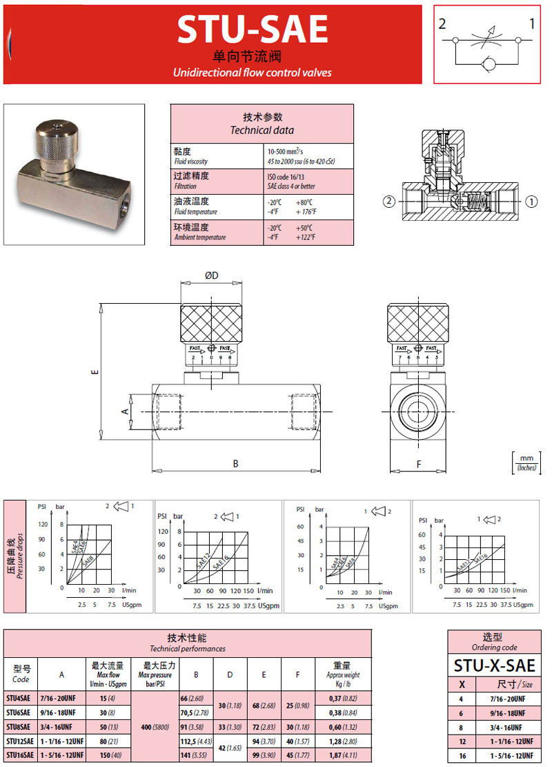 STU4SAE,STU6SAE,STU8SAE,STU12SAE,STU16SAE,單向節(jié)流閥