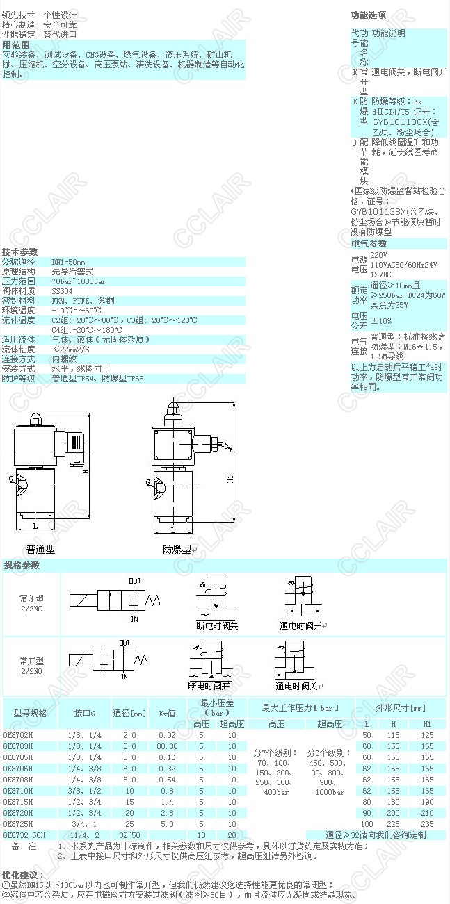 OK8702H,OK8703H,OK8705H,OK8710H,OK8715H,OK8720H,OK8725H,OK8732-50H,OK87H,特制高壓電磁閥