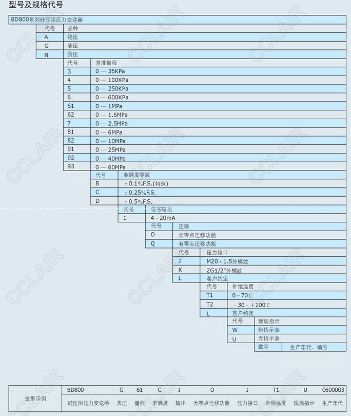 BD800A3,BD800A4,BD800A5,BD800A6,BD800G61,BD800G62,BD800G7,BD800N81,BD800N82,BD800N91,硅壓阻壓力變送器