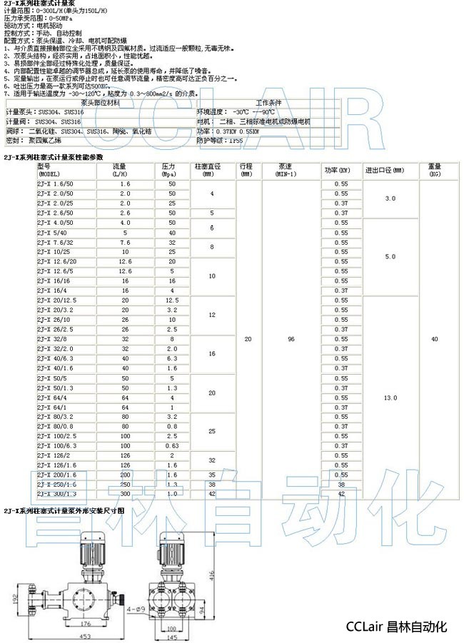 2J-X 1.6/50,2J-X 2.0/50,2J-X 2.0/25,柱塞式計量泵