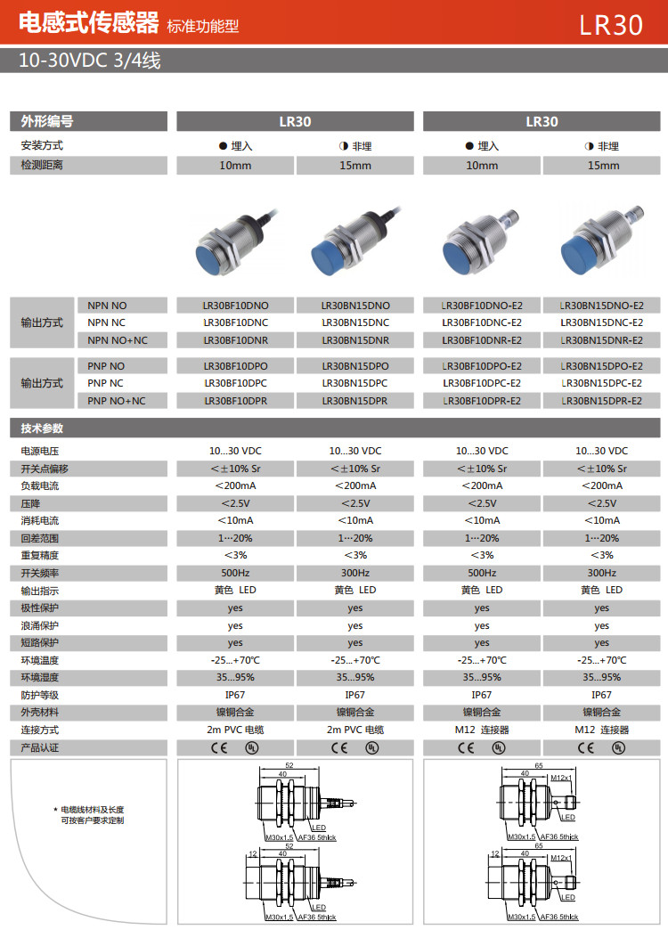 LR30BF10DNO,LR30BF10DNC,LR30BF10DNR,LR30BN15DNO,LR30BN15DNC,LR30BN15DNR,電感式傳感器
