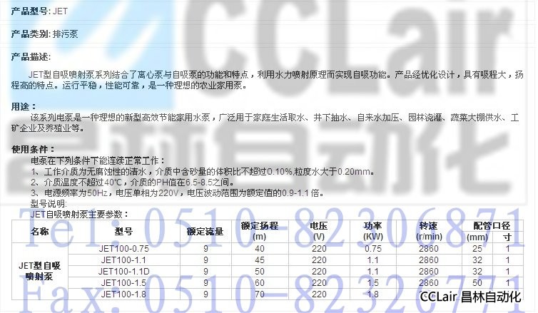 您當(dāng)前的位置:首頁 » 產(chǎn)品&解決方案 » JET100-0.75,JET100-1.1,JET100-1.1D,JET100-1.5,JET100-1.8,自吸噴射泵,