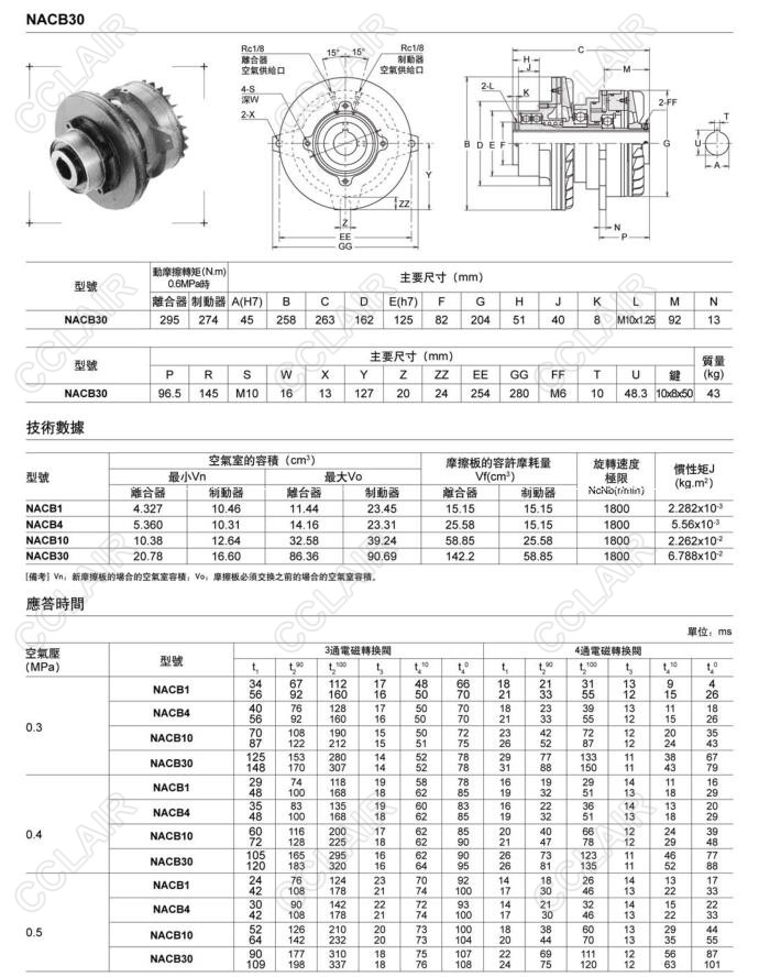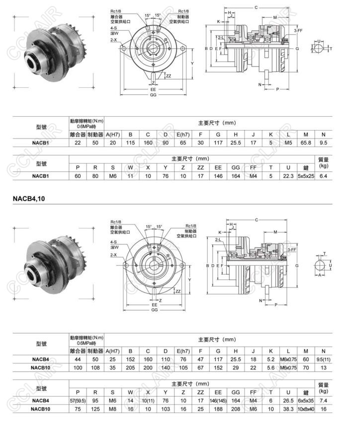 NACB1,NACB4,NACB10,NACB30,空壓通軸式離合器