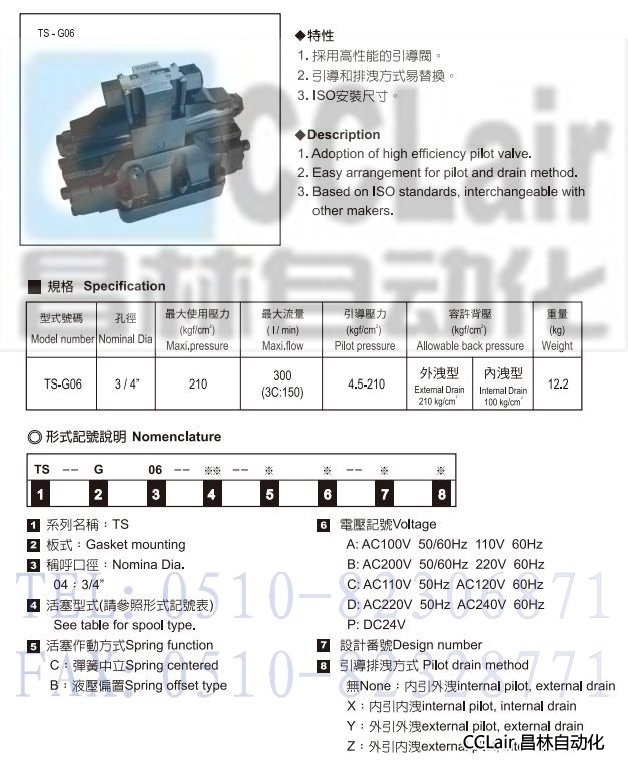 TS-G06-2C,TS-G06-3C,TS-G06-4C,TS-G06-5C,TS-G06-7C,電磁引導(dǎo)切換閥