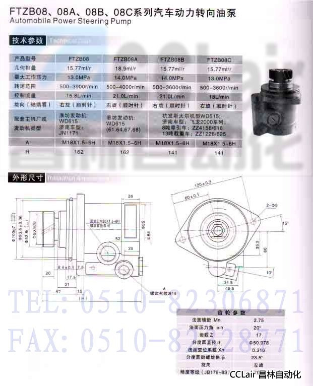 FTZB08,FTZB08A,FTZB08B,FTZB08C,汽車動力轉(zhuǎn)向油泵