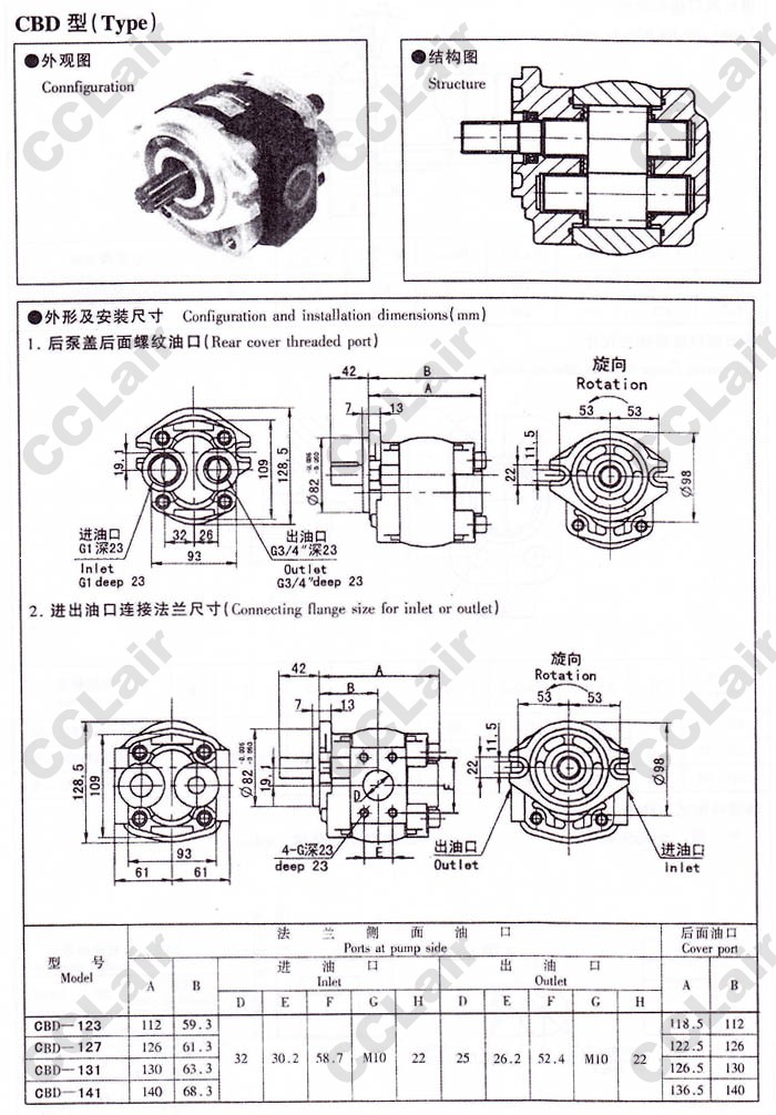 詳細信息 CBD-123,CBD-127,CBD-131,CBD-141,單級齒輪泵,YUCIYUKEN