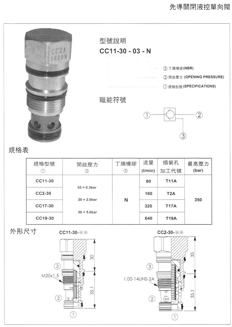 CC11-30,CC2-30,CC17-30,CC19-30,CC11-30-03-N,CC11-30-20-N,CC11-30-50-N,液控單向閥