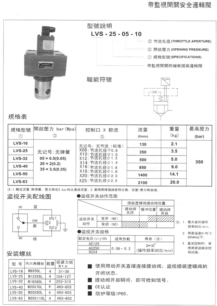 LVS-16,LVS-25,LVS-32,LVS-40,LVS-50,LVS-63,LVS-16-05,LVS-25-05,安全邏輯閥