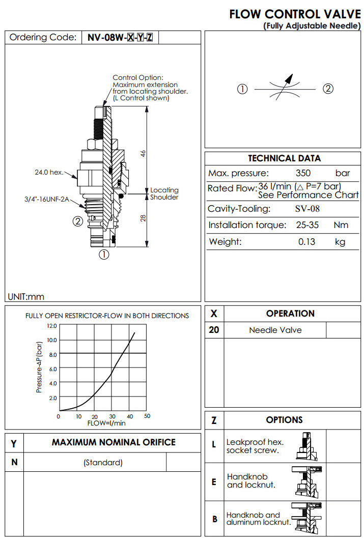 詳細信息 NV-08W-20-N-L,NV-08W-20-N-E,NV-08W-20-N-B,流量控制閥