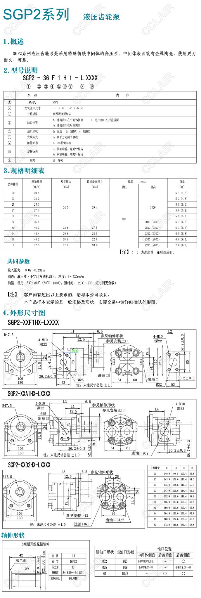 詳細(xì)信息 SGP2-23,SGP2-32,SGP2-36,SGP2-44,SGP2齒輪泵