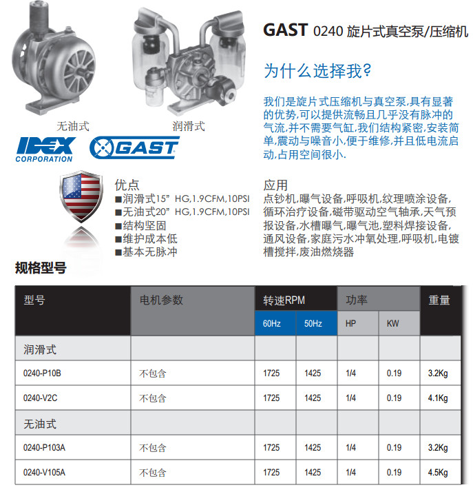 0240-P10B,0240-V2C,0240-P103A,0240-V105A,旋片式真空泵/壓縮機(jī)