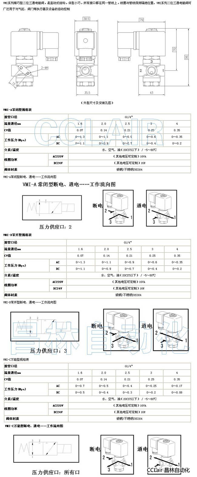 詳細(xì)信息 VMI-A常閉型,VMI-B常開型,VMI-C萬(wàn)能型,電磁閥