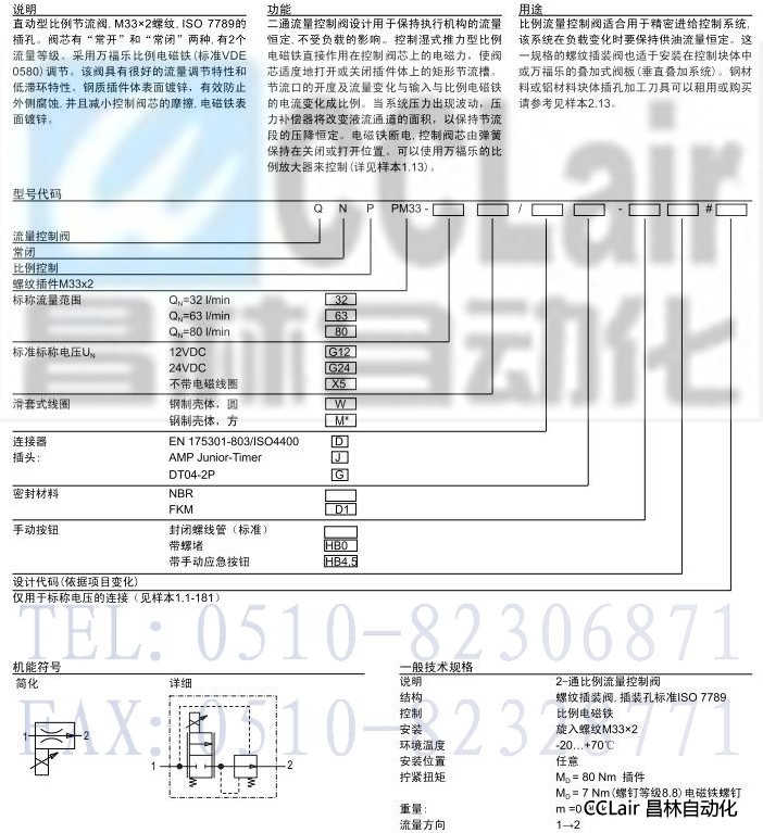 產(chǎn)品: 瀏覽次數(shù):759QNPPM33,插裝式比例 2-通流量控制閥(滑套式線圈)