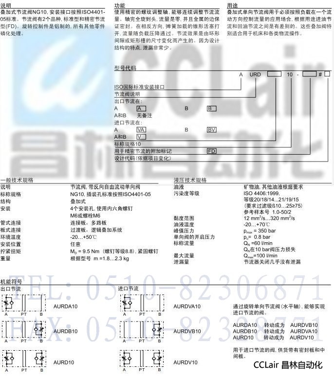 詳細(xì)信息 AURDA10,AURDB10,AURD10,AURDVA10,AURDVB10,AURDV10,疊加式單向節(jié)流閥