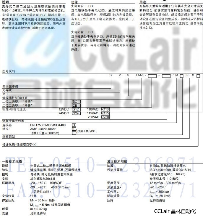 SVSPM20-BC,SVSPM20-CB,先導(dǎo)式插裝式無泄漏電磁閥