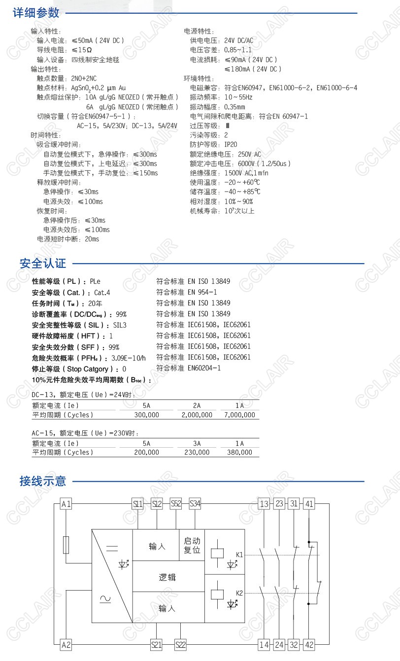 CZSR8301-2A2B是適用于安全地毯輸入,具有2路NO(常開(kāi))安全輸出觸點(diǎn)和2路NC(常閉)輔助輸出觸點(diǎn)的安全繼電器。它支持雙通道操作,手動(dòng)或自動(dòng)復(fù)位功能。