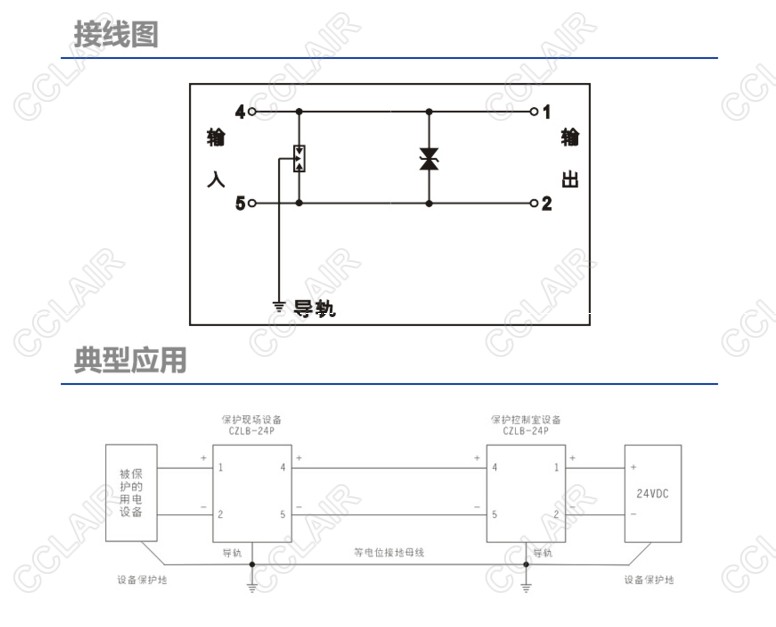 24VDC電源SPD,適合24VDC、電磁閥等電源回路,最大放電電流Imax(8/20us):10kA/線,7.6mm超薄,通過接地端子或DIN35金屬導(dǎo)軌接地。