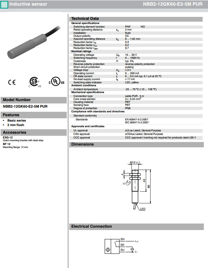 型號: NBB2-12GK60-E2-5M PUR