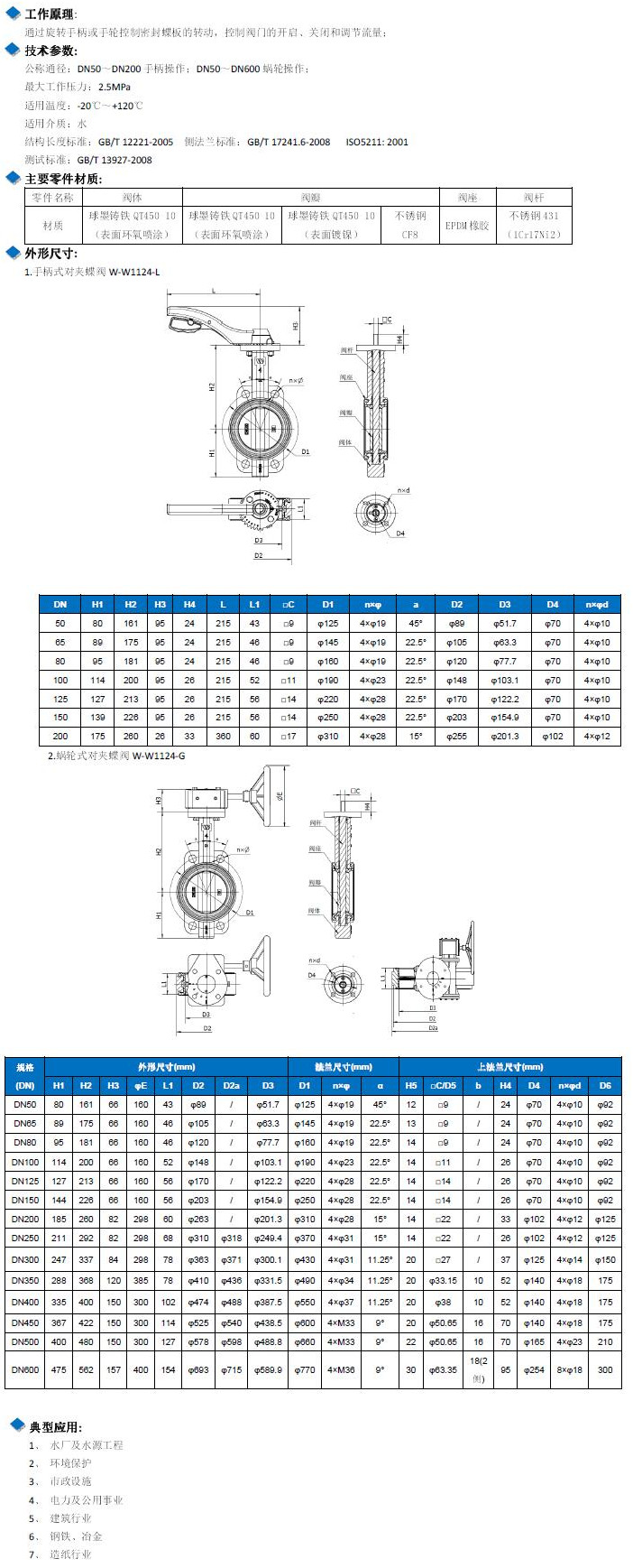 W-W1124-L-DN50,W-W1124-L-DN65,W-W1124-G-DN50,W-W1124-G-DN65,對夾中線蝶閥