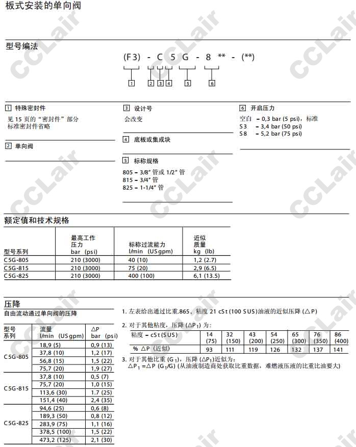 C5G-805,C5G-815,C5G-825,C5G-805-S3,C5G-805-S8,威格士-Vickers,單向閥