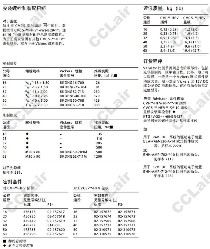 CVCS-16-HFV3-W-B2-10,CVCS-25-HFV3-W-B2-10,威格士-Vickers CVCS-32-HFV3-W-B2-10,