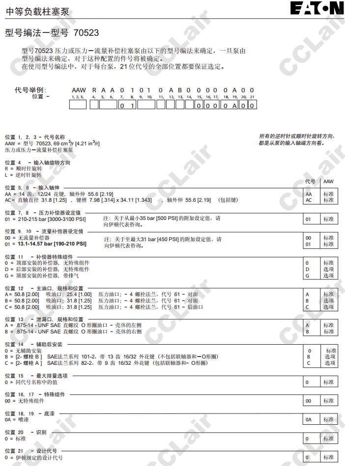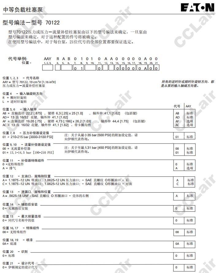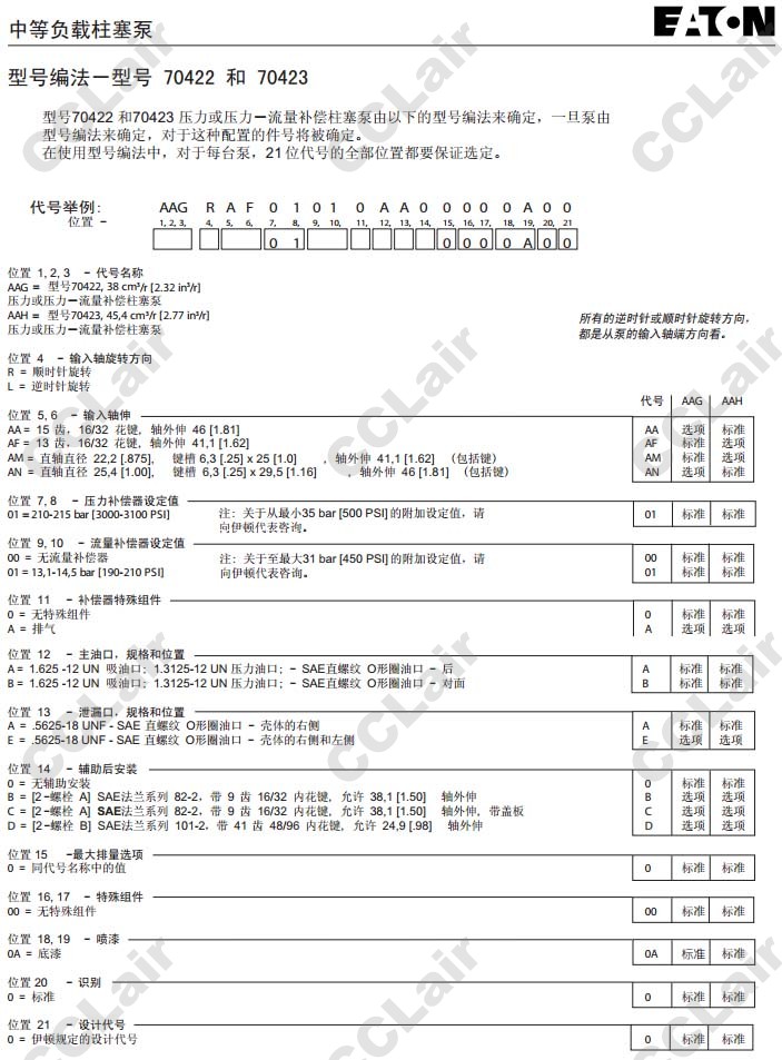 70122,AAYRABG100,70422,AAGRAA0101,70423,AAHLAA0101,70523,AAWLAA0101,威格士-Vickers,開式回路柱塞泵,