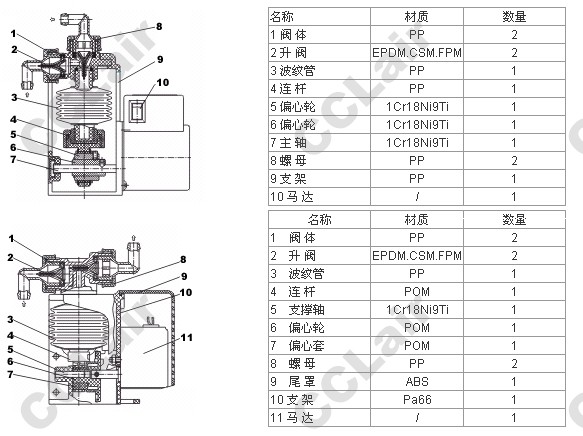 耐腐性能好……泵體采用聚丙烯制成,閥門選用了特種配方的FPM、EPDM,耐各種酸、堿等腐蝕性液體。
