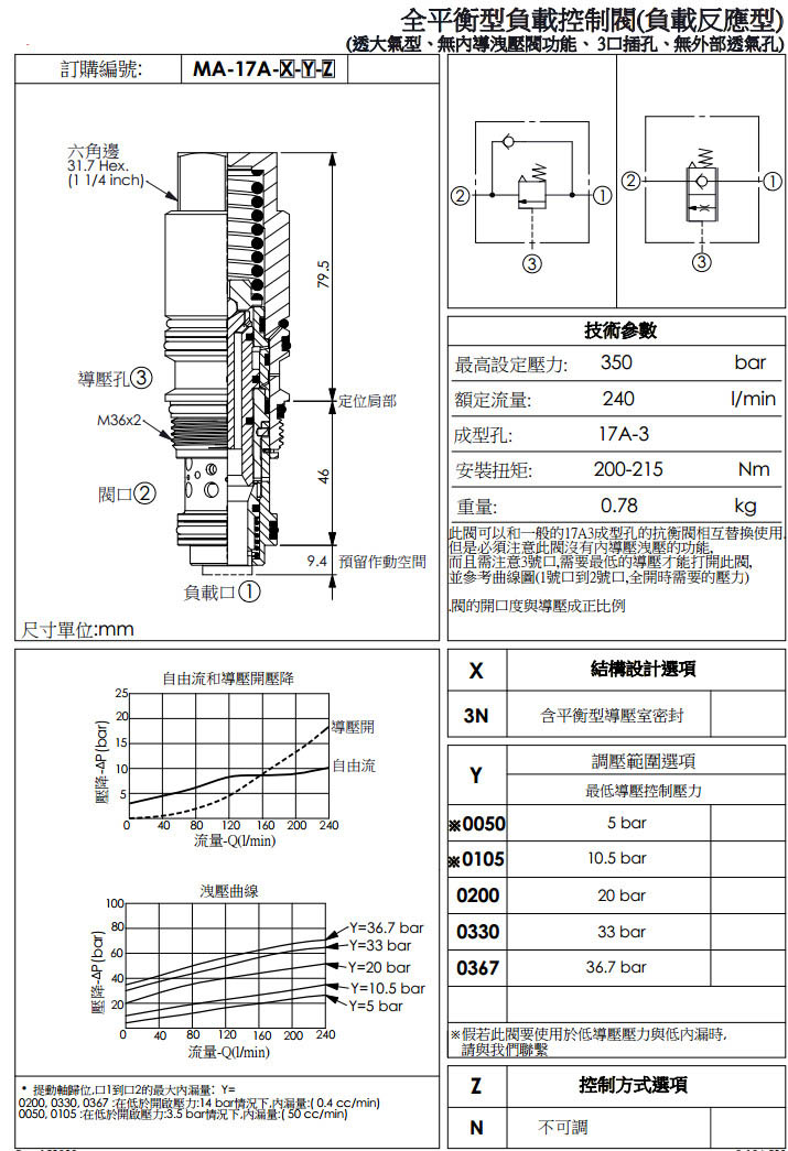 詳細(xì)信息 MA-17A-3N-0050-N,MA-17A-3N-0105-N,MA-17A-3N-0140-N,MA-17A-3N-0200-N,winner全平衡型負(fù)載控制閥