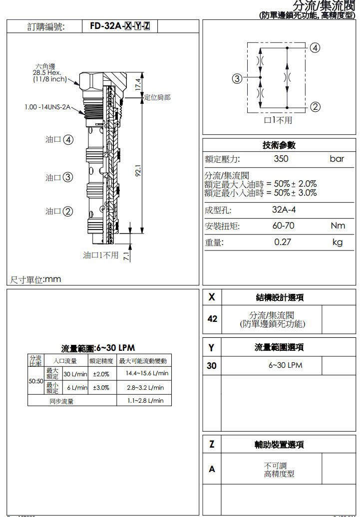 詳細(xì)信息 FD-32A-42-30-A,winner分流/集流閥