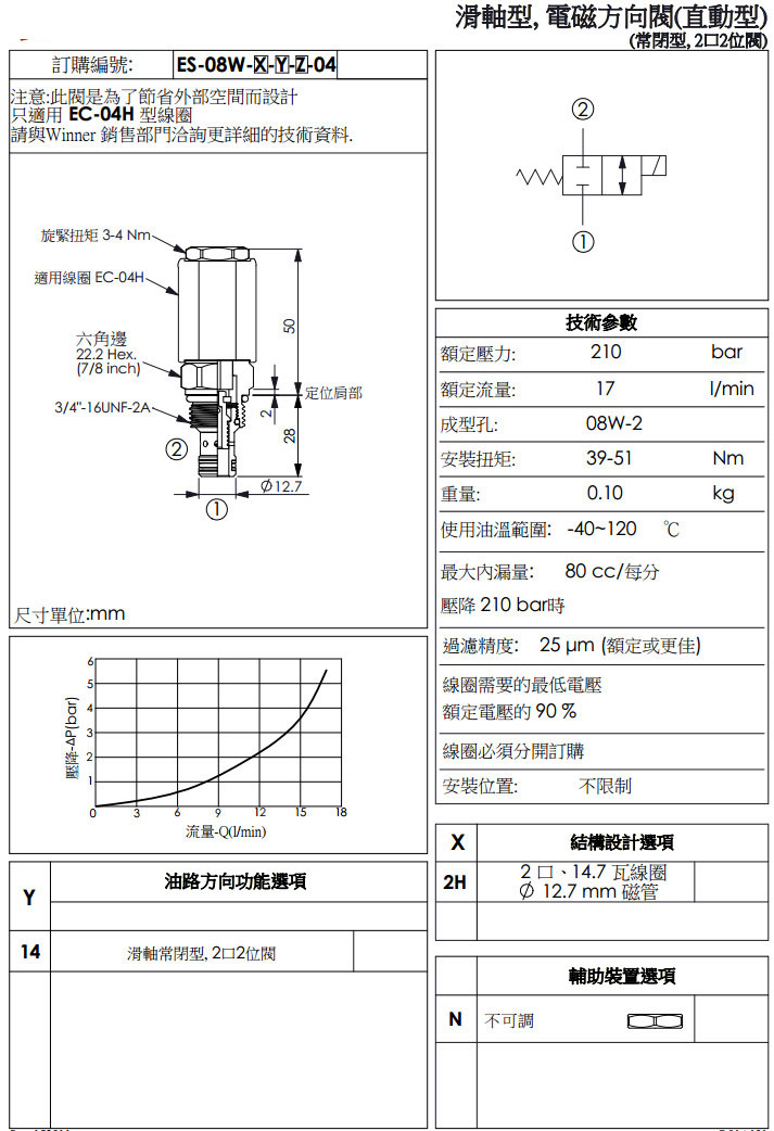 詳細(xì)信息 ES-08W-2H-14-N-04,ES-08W-2H-15-N-04,winner滑軸型電磁方向閥
