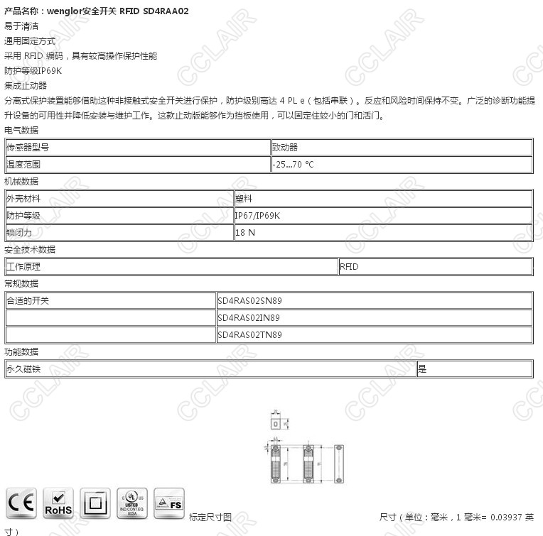 詳細(xì)信息 SD4RAA02,wenglor安全開關(guān)RFID